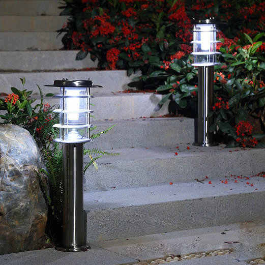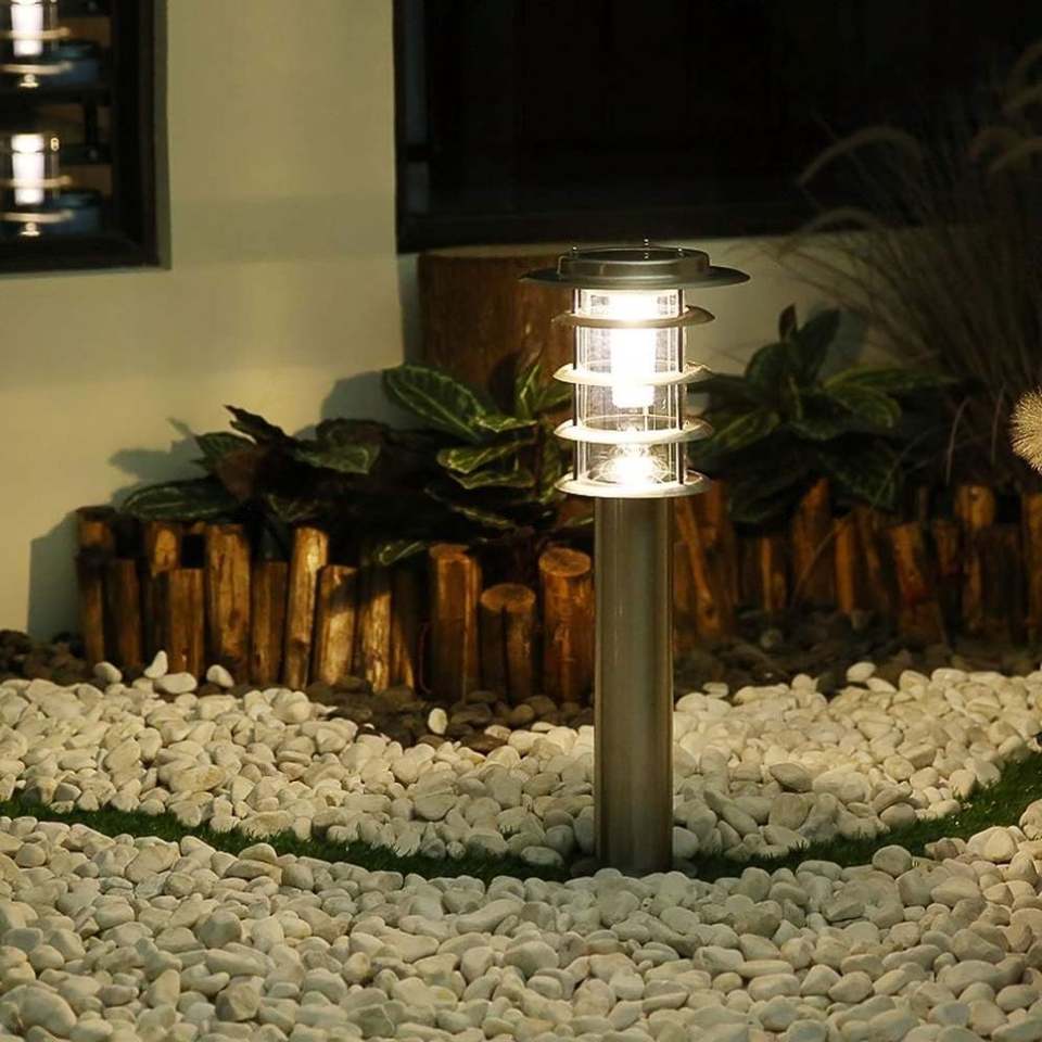 Lámpara Solar de Columna para Jardín, Césped, Villa, Exterior, Hogar, Impermeable, Simple, LED, Acero Inoxidable