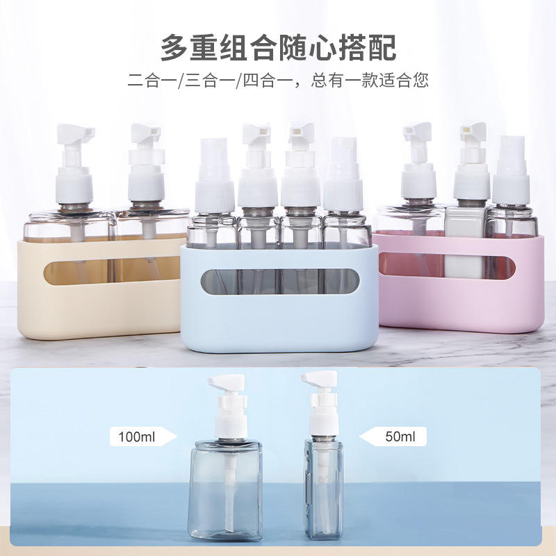 Juego de botellas combinadas de plástico de 50ml y 100ml, botellas portátiles de viaje con pulverizador para champú, jabón de manos y cosméticos