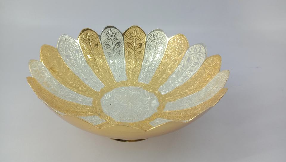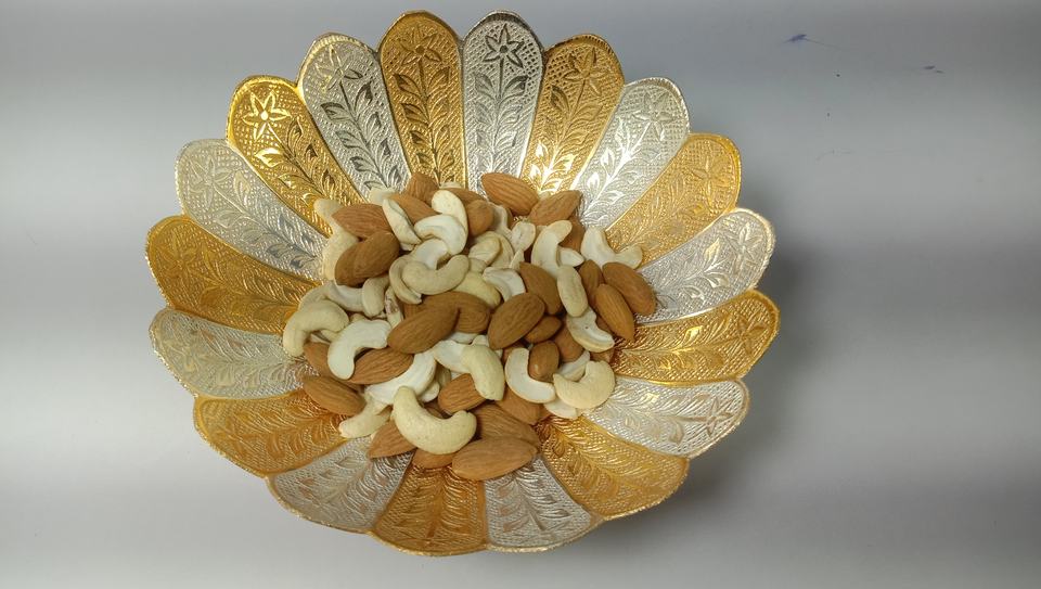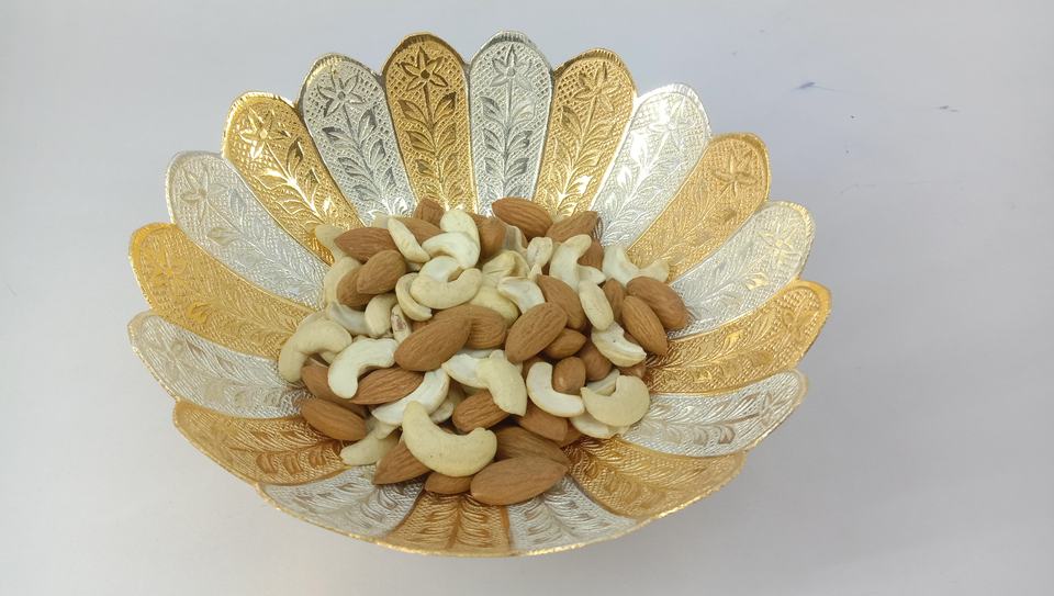 Cuenco para servir chapado en oro y plata de diseño único, Decoración de mesa elegante de lujo para el hogar con Metal pulido para frutas secas