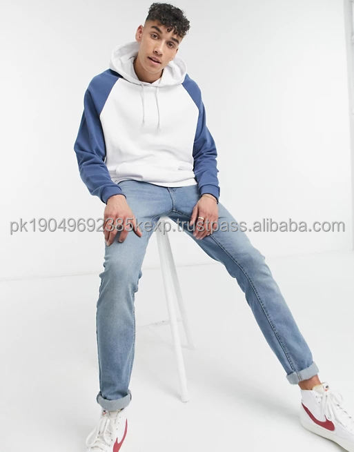 Sudadera con Capucha Combinada Raglan para Hombre, Color Claro en Contraste, Sudadera de Moda de Temporada