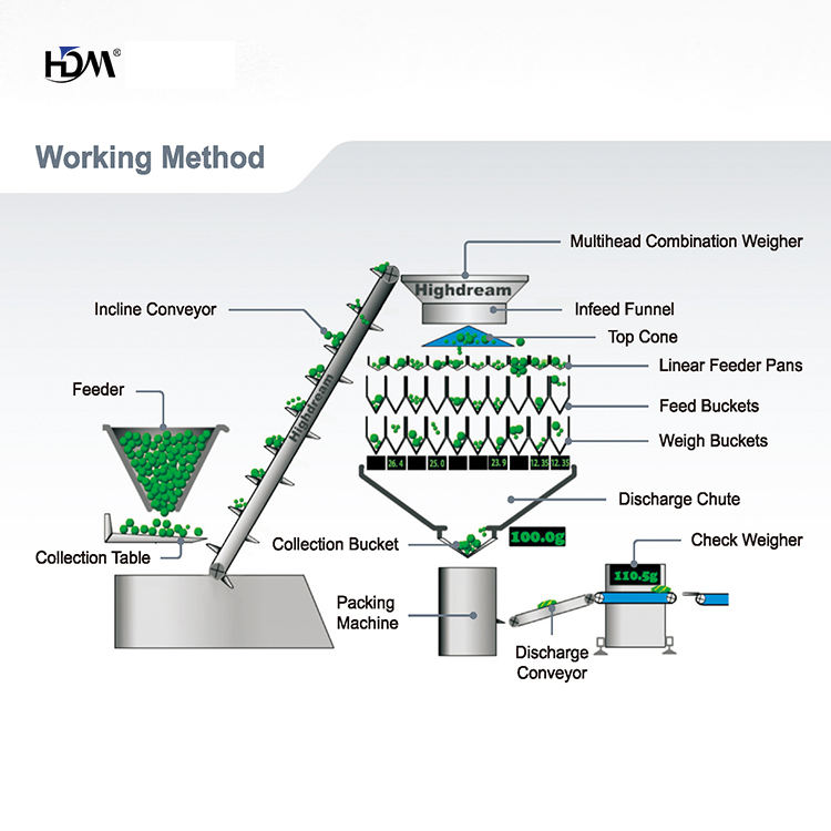 Motor, PLC, SS304 Stepping Motor Housing, 3D Menu, Top Cone, Linear Feeder Pan, Rrounded Corner Hoppers, 10.4" Color Touch Screen, Water Proof Cabinet