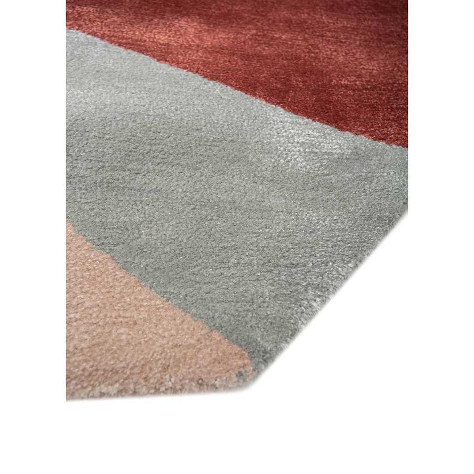 Alfombras de Lana y Viscosa Hechas a Mano, Alfombra Rectangular Abstracta con Rayas Geométricas Rojas y Naranjas para el Hogar, Pasillo, Modelo TNQ-1126
