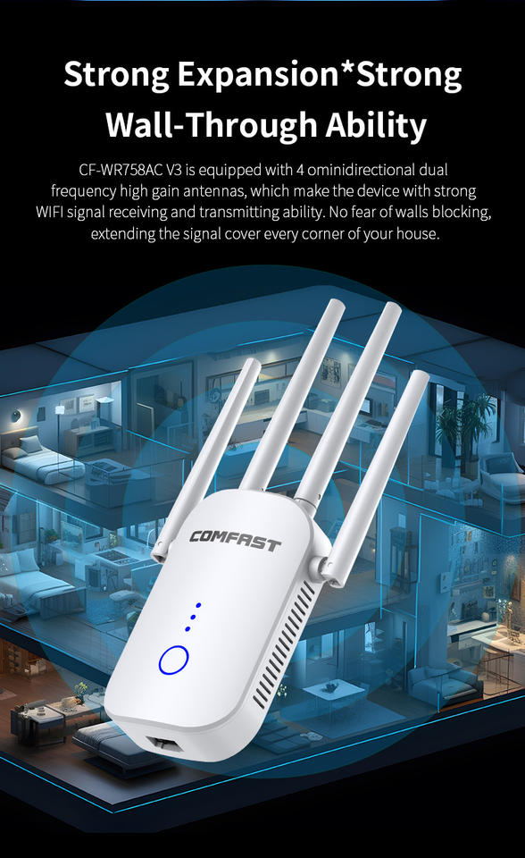 Punto DE ACCESO Comfast CPE 1200Mbps banda Dual 2,4G 5G WiFi enrutador repetidor con CE FCC ROHS inalámbrico AP extensor de rango mejorado