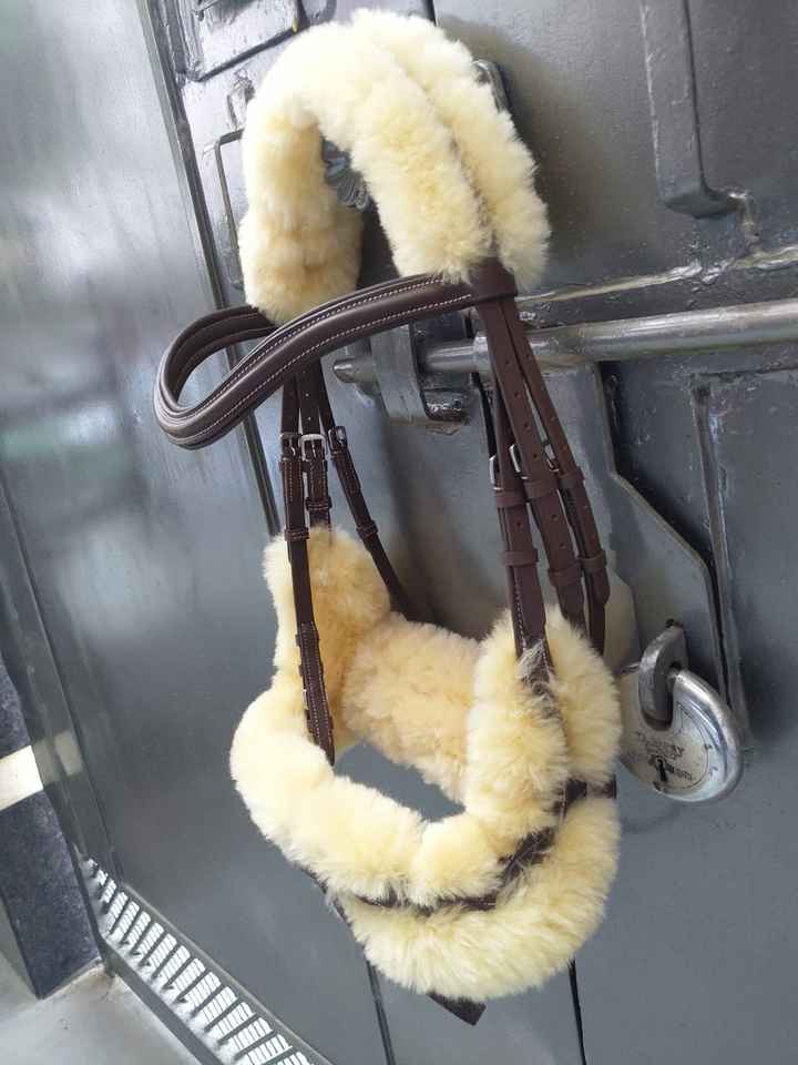 Cómoda brida de piel de oveja para carreras de caballos y saltos Deportes al aire libre Producto para caballos