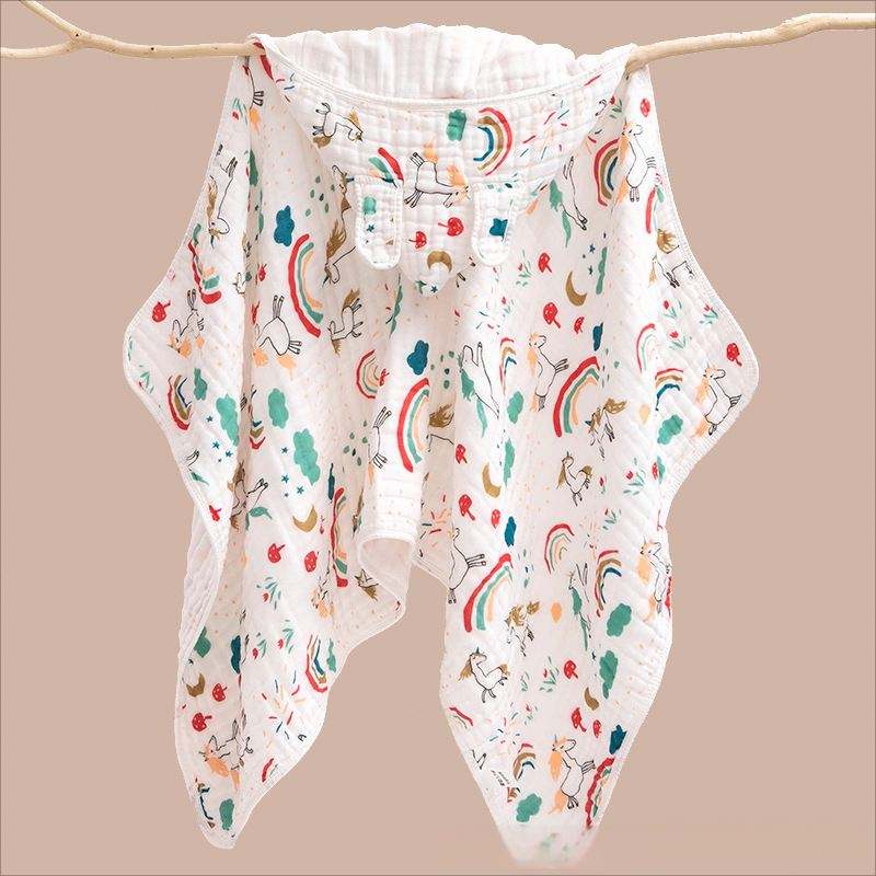 Manta Envolvente con Capucha de Muselina para Bebé, 90x90cm, 100% Algodón Tejido, Diseño de Dibujos Animados