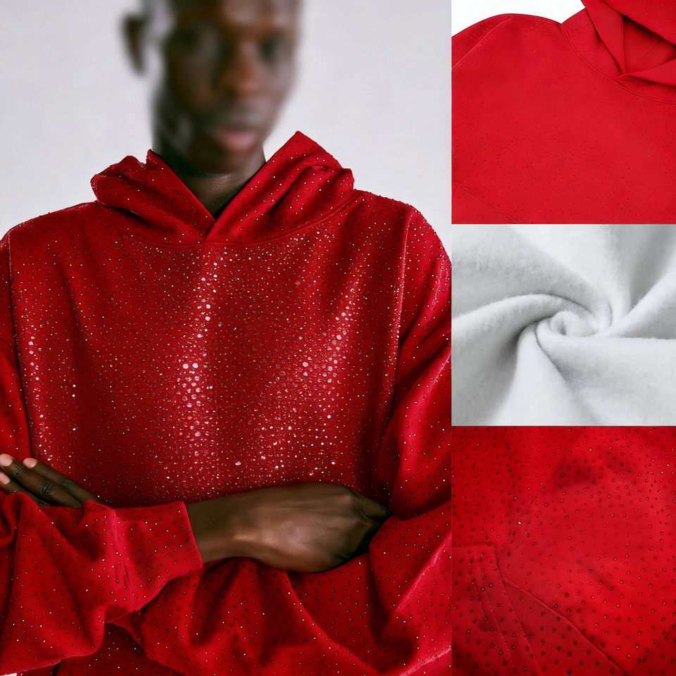 Comfort Cotton Full Rhinestone Hoodies-Diseñador personalizado Gráfico Peso pesado Streetwear Sudadera, Elegante Puff Print Pullover