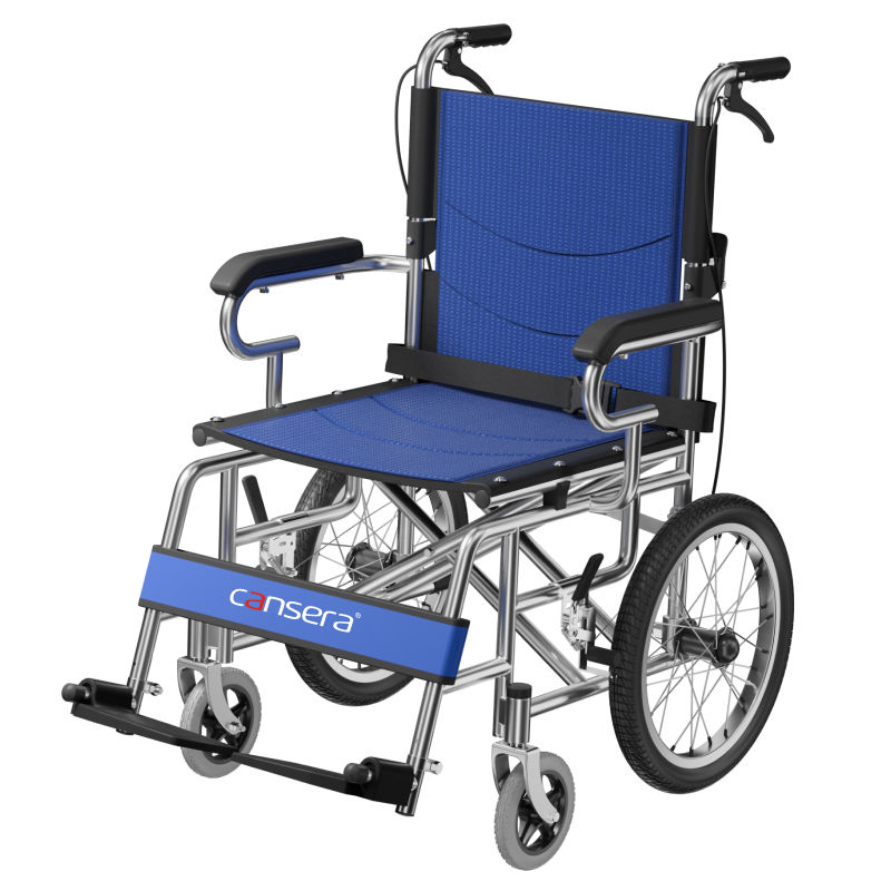 Silla de Ruedas Plegable Comfort Ride Azul, Llantas de Aire con Absorción de Impactos de 16 Pulgadas, Asiento de Malla Transpirable Azul, Marco de Acero al Carbono, Plegado en un Solo Paso