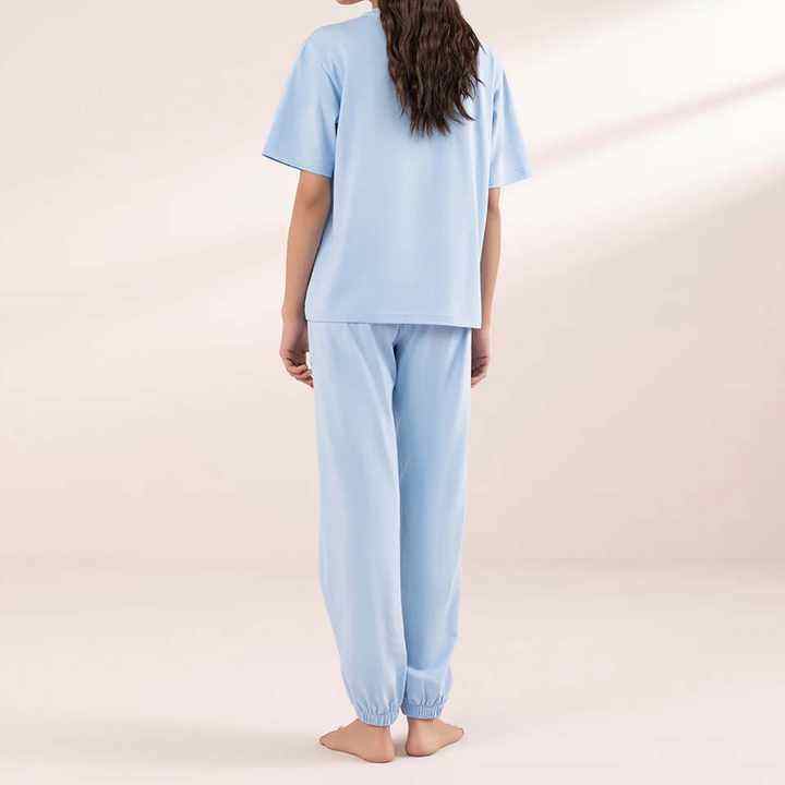 Cómodo conjunto de traje de dormir de dos piezas de algodón orgánico 100% para mujer, Conjunto de pijama y camiseta de gran tamaño liso con logotipo personalizado