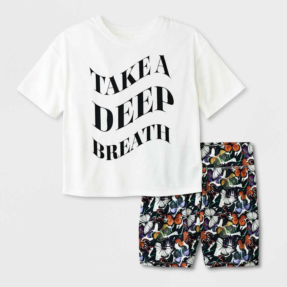 Conjunto de Pijama a Cuadros Crema de 2 Piezas para Niñas, Incluye Camiseta y Pantalones Cortos, 100% Algodón, Talla 8, para Otoño y Primavera, para Niños