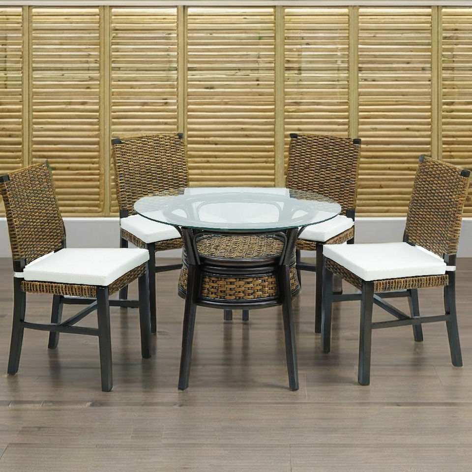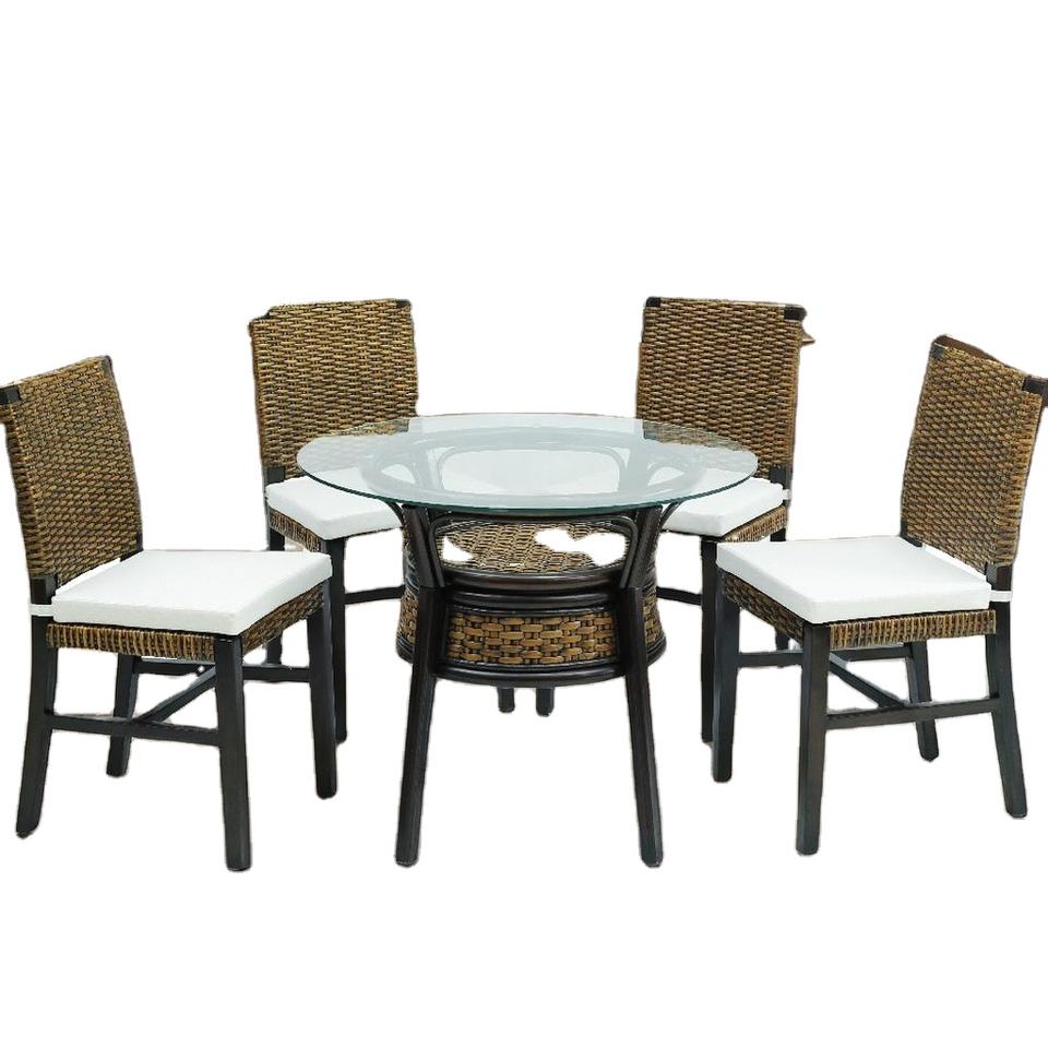 Cómodo Juego de Comedor de Diseño Asiático Antiguo con Estructura de Ratán (Modelo ATHENA) No Plegable para Uso en el Hogar, Apartamentos, Villas, Hoteles