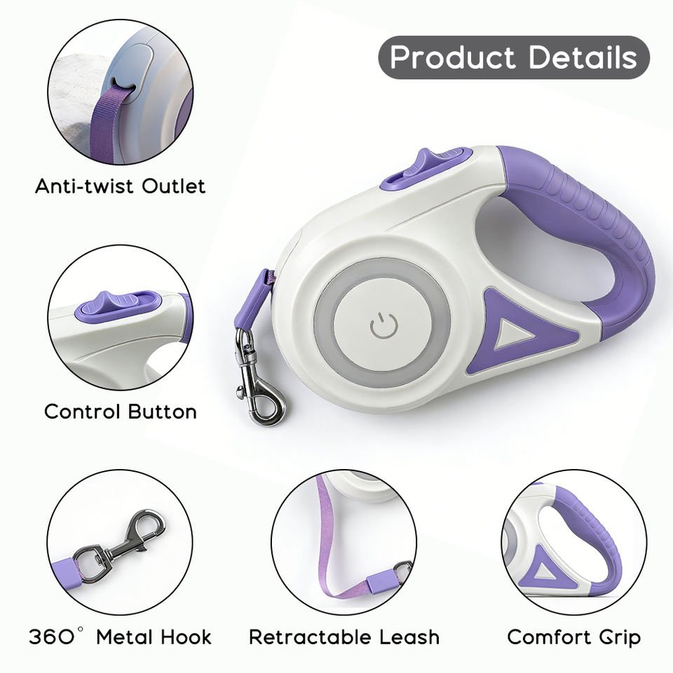 5M Color lights, retractable LED lights dog traction rope