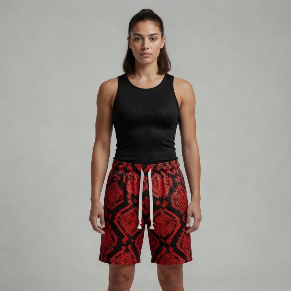 Pantalones Cortos Casuales Transpirables y Cómodos para Hombre y Mujer, Sublimados Personalizados, Diseño de Piel de Serpiente, Pantalones Cortos de Malla, Pantalones Cortos de Verano