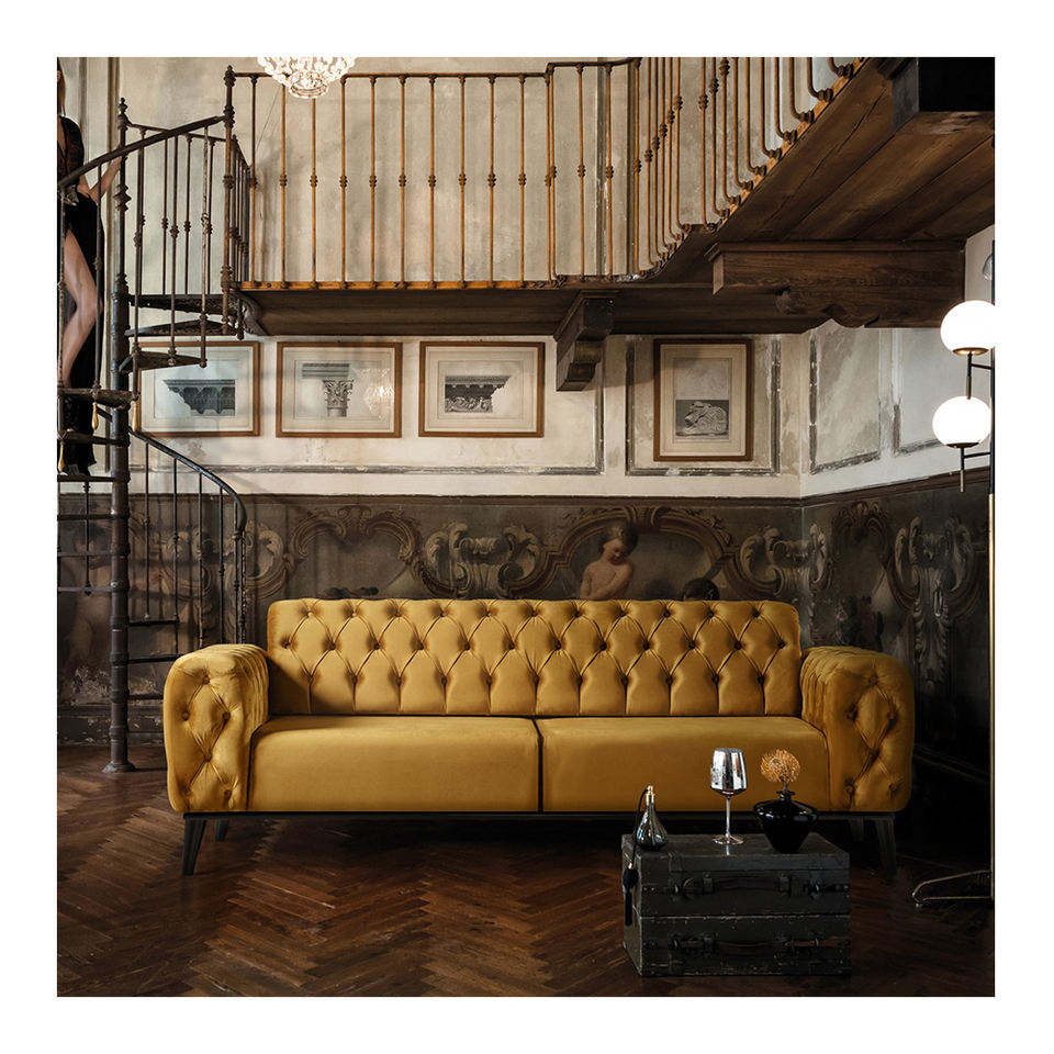 Cómodo juego de sofás convertibles Chesterfield para sala de estar, hotel, apartamento o villa, muestra gratis disponible