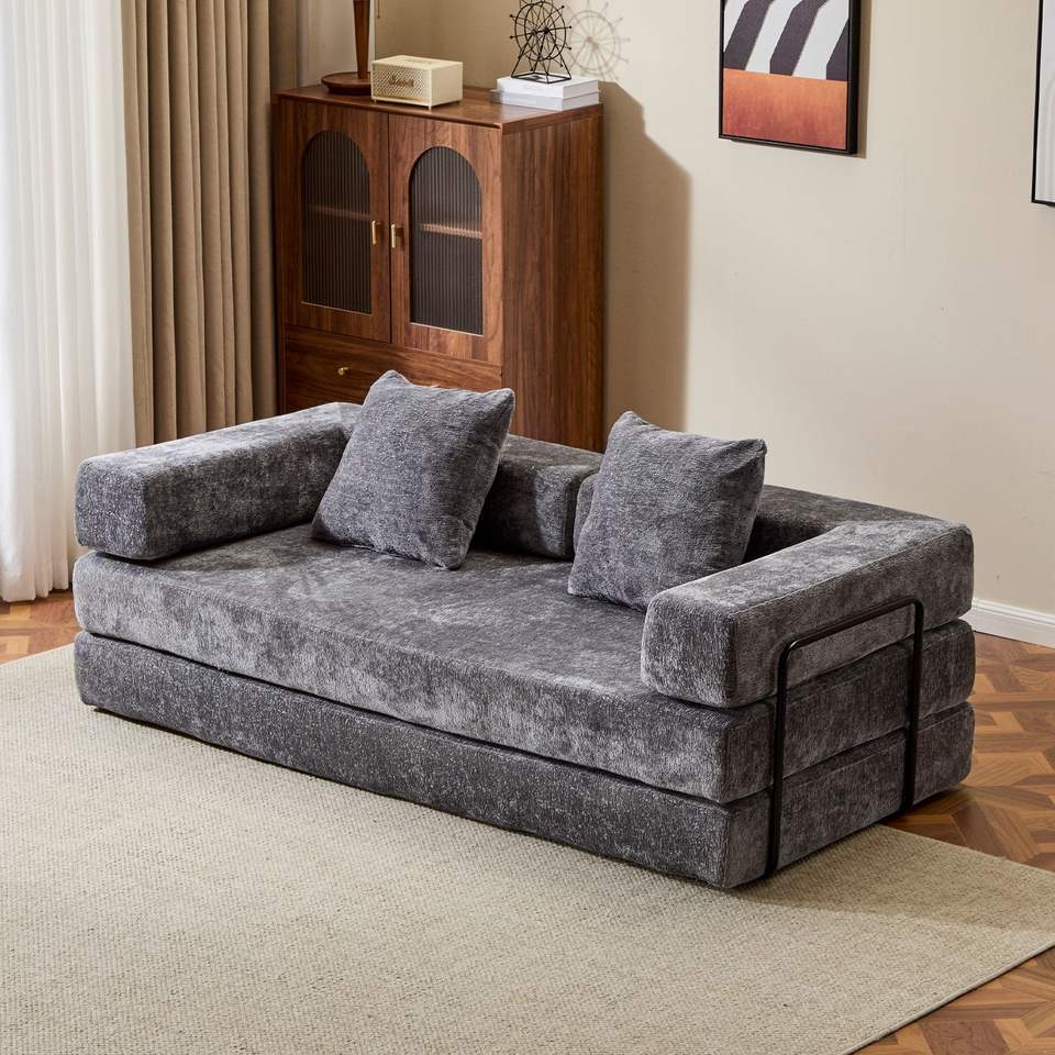 Cómodo Sofá Cama Convertible con Respaldo de Almohada y Reposabrazos, Futón Cómodo para Descansar, C-Product