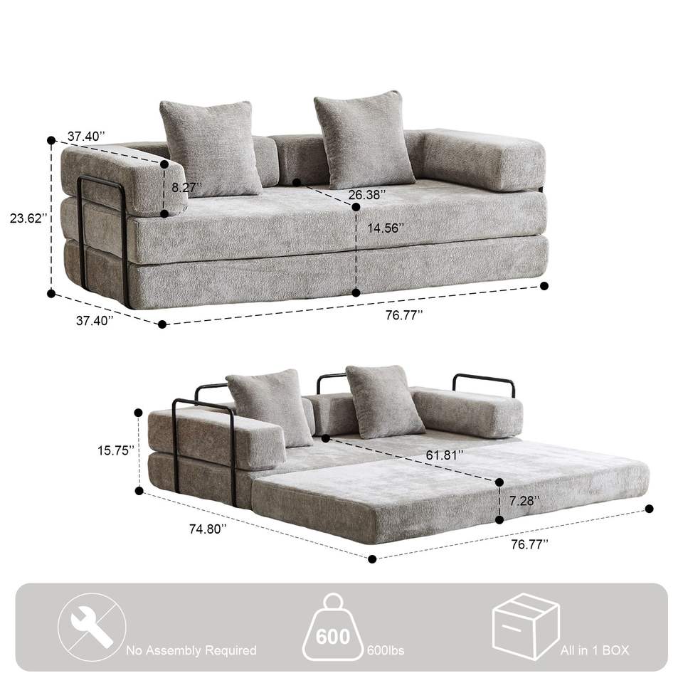 Cómodo Sofá Cama Convertible con Respaldo de Almohada y Reposabrazos, Futón Cómodo para Descansar, C-Product