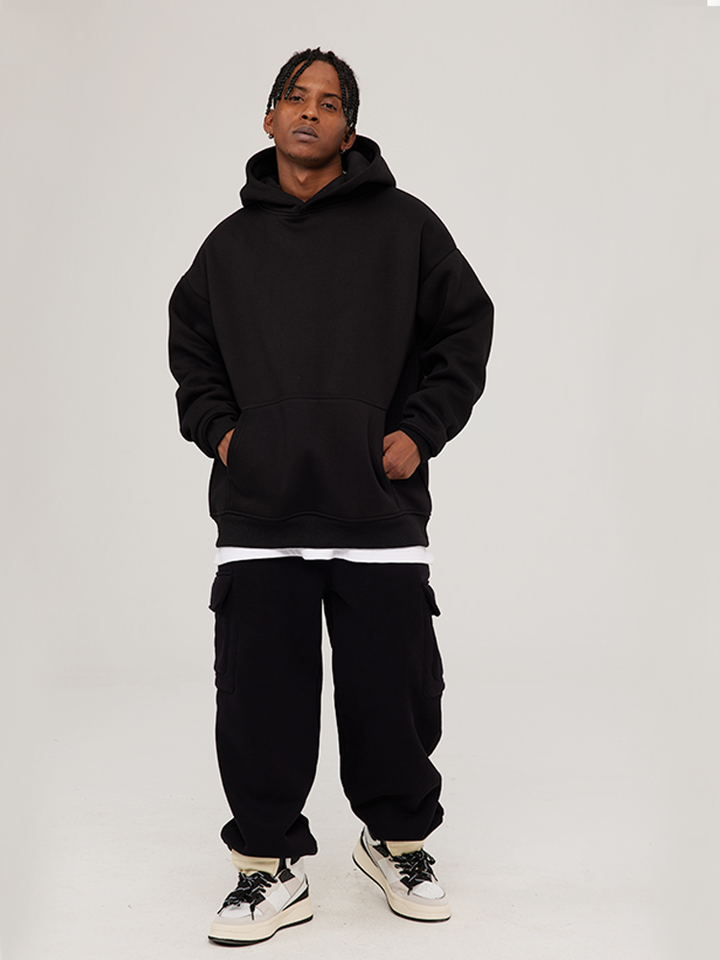 Cómodo invierno bordado hombres de talla grande ropa deportiva sudaderas con capucha elegante diseño minimalista 100% algodón de gran tamaño polar para