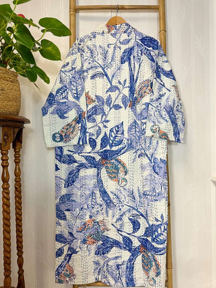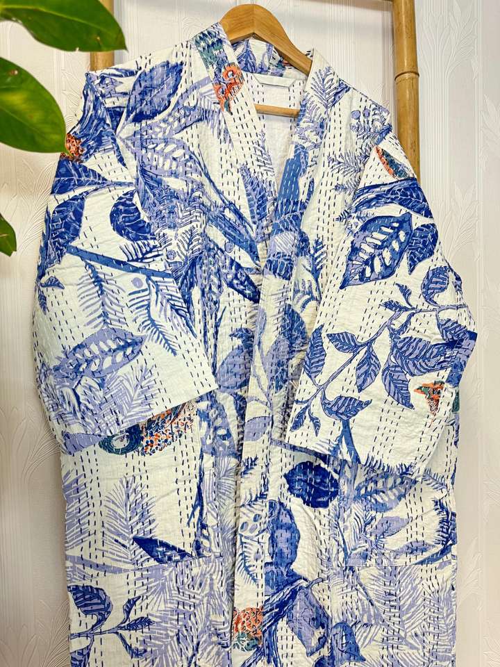 Vestidos estampados de bloques bohemios abrigos largos suaves para mujer tela cómoda Kantha Kimono chaqueta bata fajas albornoces artículos conjuntos