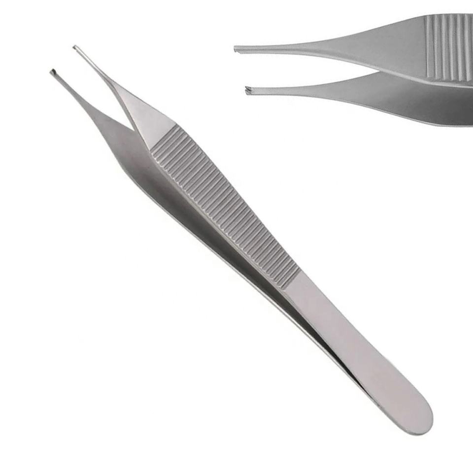 Cómodo agarre Micro Adson fórceps instrumentos quirúrgicos rectos puntas delicadas dientes mango ergonómico hemostático para Ceps