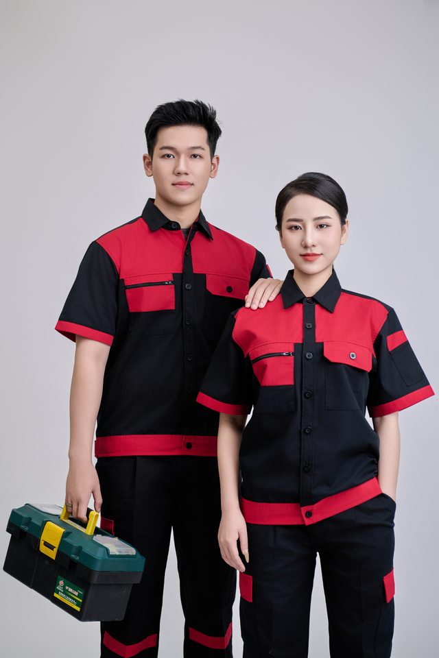 Ropa de Trabajo Cómoda de Alta Visibilidad Negra/Roja | Uniforme Femenino de Tela TC Resistente