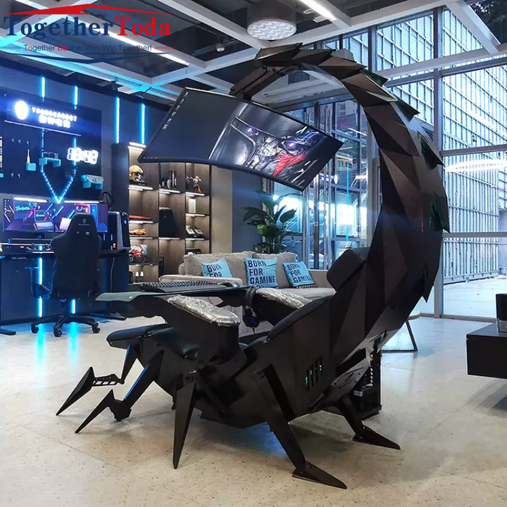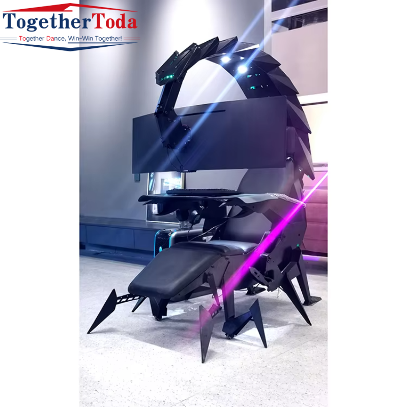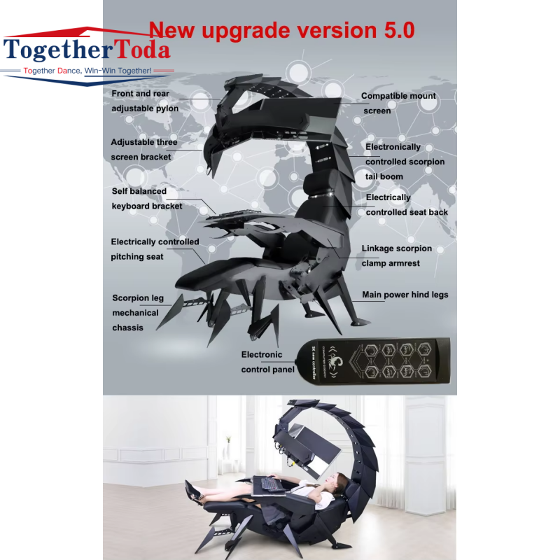 Cómoda Silla Gamer Scorpion de Alta Tecnología, Nueva y Moderna, Eléctrica, Reclinable, Giratoria, con Soporte para 3 Monitores, con Cojín de Calor y Masaje