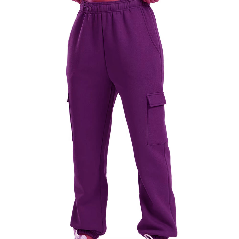 Pantalones Deportivos Casuales de Cintura Alta para Mujer, Diseño Personalizado, Tejido de Felpa, con Bolsillos