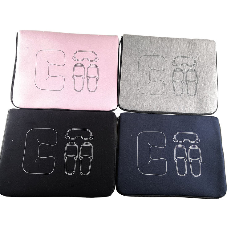 Cómoda almohada inflable de viaje para el cuello, almohada de viaje en avión, kit de viaje con máscara para los ojos, zapatillas, tapones para los oídos