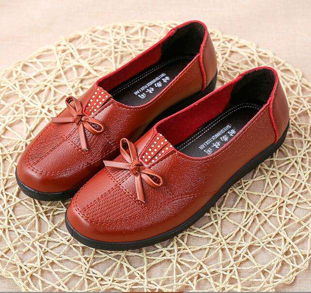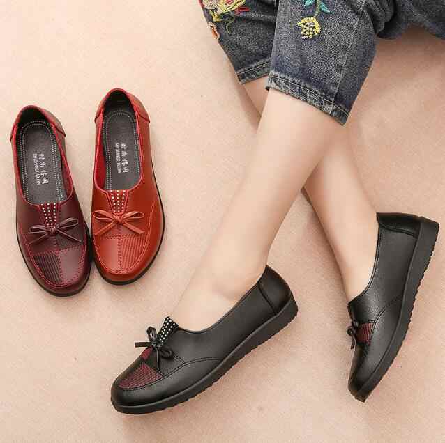 Zapatos planos de cuero con lazo para mujer, Calzado cómodo, diseño bonito, a la moda, con suela suave, para primavera