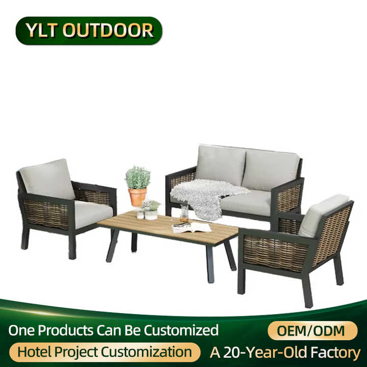 Cómodo conjunto combinado de muebles de exterior, sofá Seccional de jardín de aluminio de ratán, juego de Patio, muebles de jardín