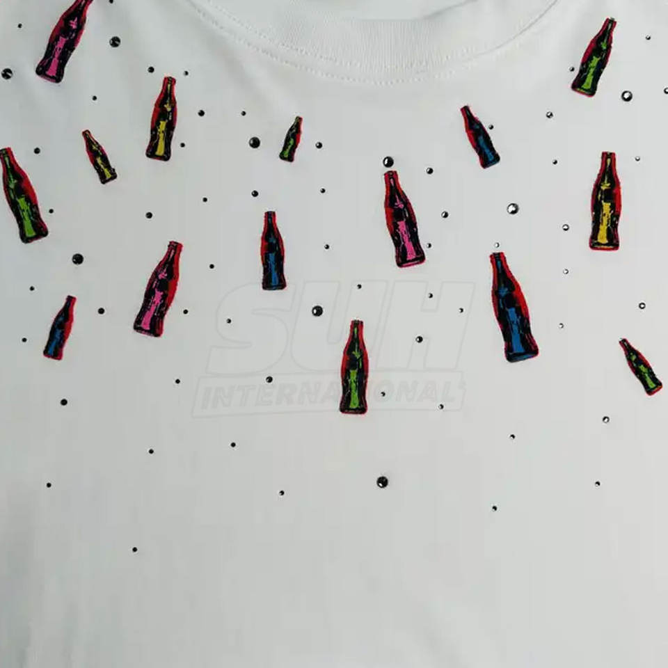 Camiseta de Hombre con Pedrería, Cómoda, de Secado Rápido, Transpirable, Ecológica, 100% Algodón, Corte Holgado, Diseño Sólido, Alta Calidad, Precio Bajo
