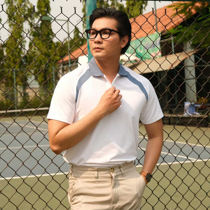 Nombre del producto:Abajo Raglans Front Polo con paneles curvos en contraste