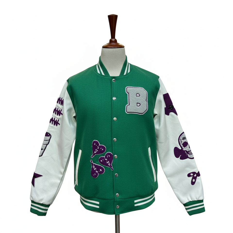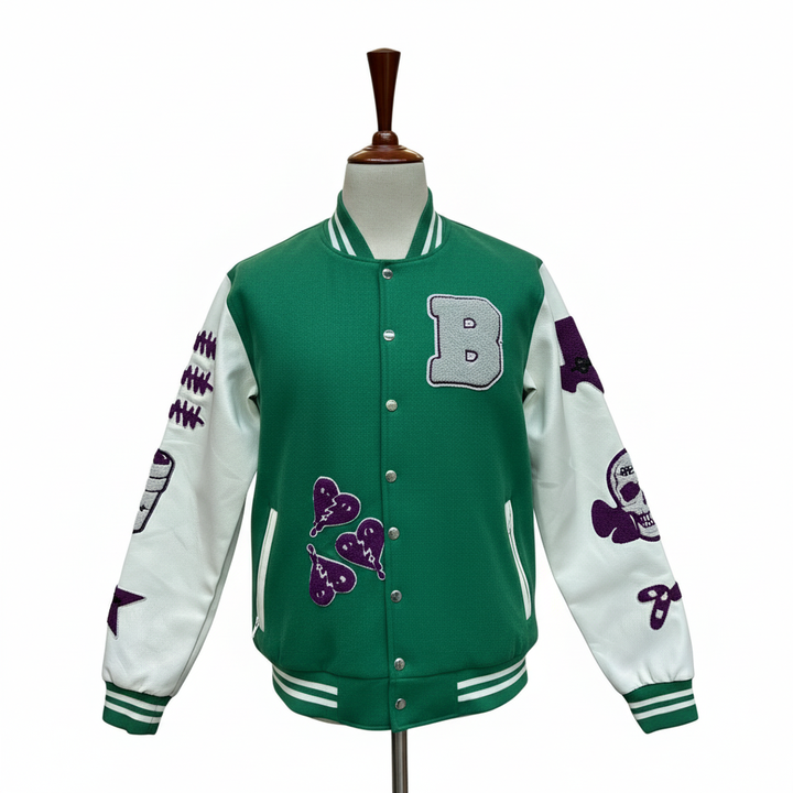 Chaqueta Varsity para Hombre, Personalizada, con Bordado Chenille, Talla Cómoda, Muy Solicitada, Fabricada en Fábrica, Precio Económico, con Mangas de Cuero