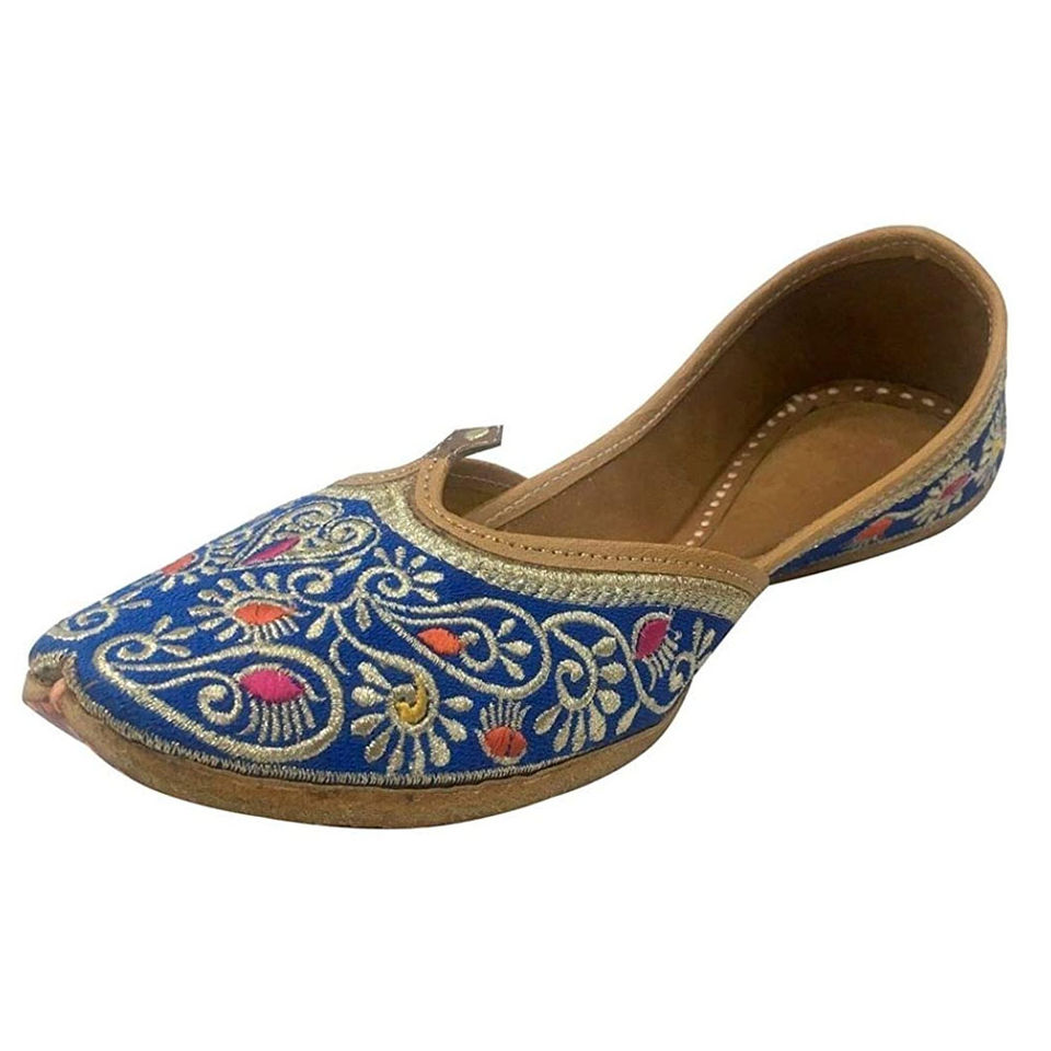 Khusa-zapatos bordados azules para mujer, calzado plano de interior, ligero, colores mixtos, khusa paquistaní