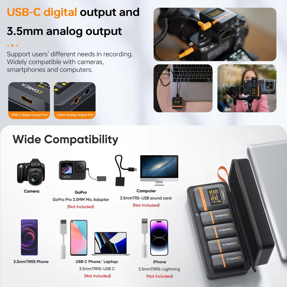 Comica Vimo Q cuatro canales 2,4G Mini micrófono inalámbrico con caja de carga para cámara Smartphone PC entrevistas de transmisión en vivo
