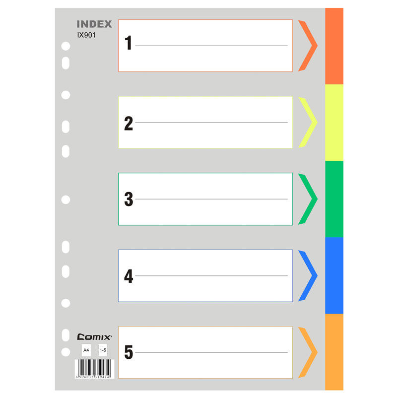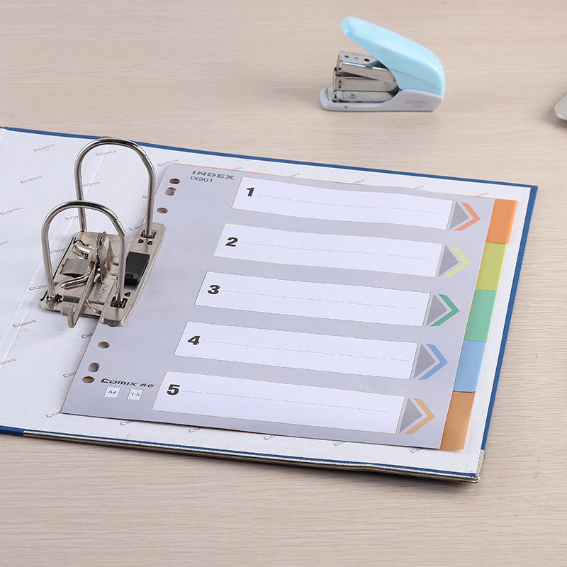 Papel índice Comix IX901 A4, hoja divisora de cinco colores con 11 orificios para organizar documentos