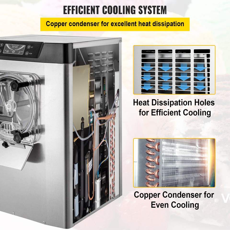 Máquina de Helados Comercial de 1400W con Pantalla LED, 20/5.3 Gph, Apagado Automático, Temporizador, para un Solo Sabor