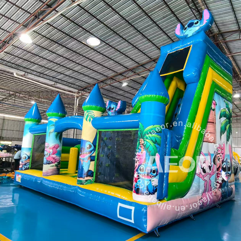 Equipo de carrera de obstáculos de PVC de grado 18OZ comercial Parque de atracciones Castillo hinchable con tobogán y escalada