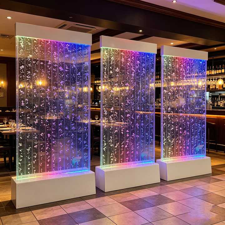 Panel de Burbujas de Agua LED RGB Acrílico Comercial, Fuente de Pared Decorativa, Separador de Ambientes para Comedor y Bar