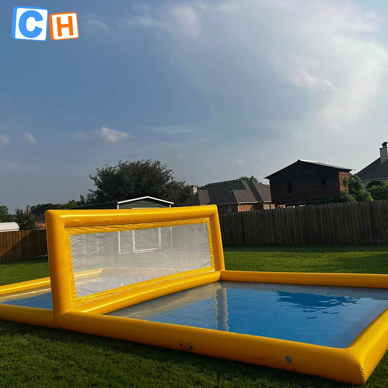 Campo de voleibol inflable hermético comercial piscina PVC cancha de voleibol acuático inflable para juegos deportivos de agua