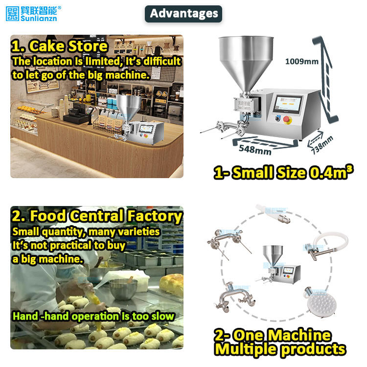 Máquina Comercial Automática de Sobremesa para Rellenar Crema, Mermelada y Otros Productos de Repostería, 220V, Nueva, con Control Táctil, Acero Inoxidable 304