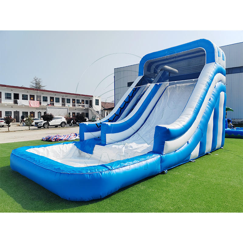 Castillo Inflable Comercial Azul con Tobogán Acuático, Parque Acuático Inflable Gigante con Piscina para Parque Acuático