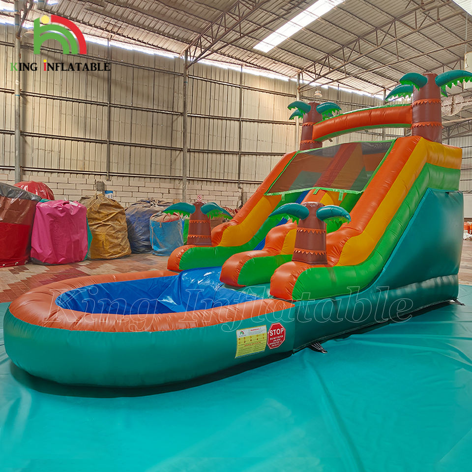 Tobogán de agua inflable de castillo hinchable comercial Fiesta Tropical Breeze niños adultos tobogán de agua inflable con piscina