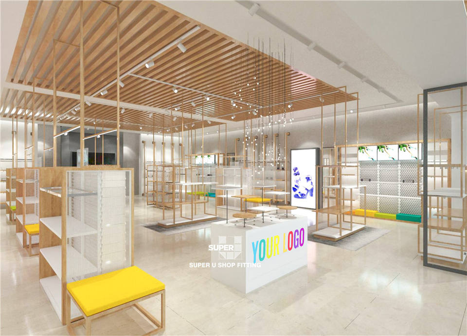 Cadena comercial de la tienda de pared de listones de pantalla de tienda Slatwall zapato pantalla Super U zapato de moda tiendas