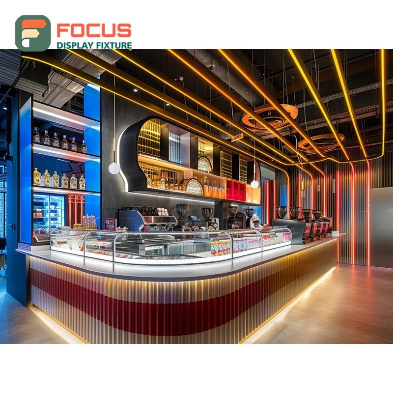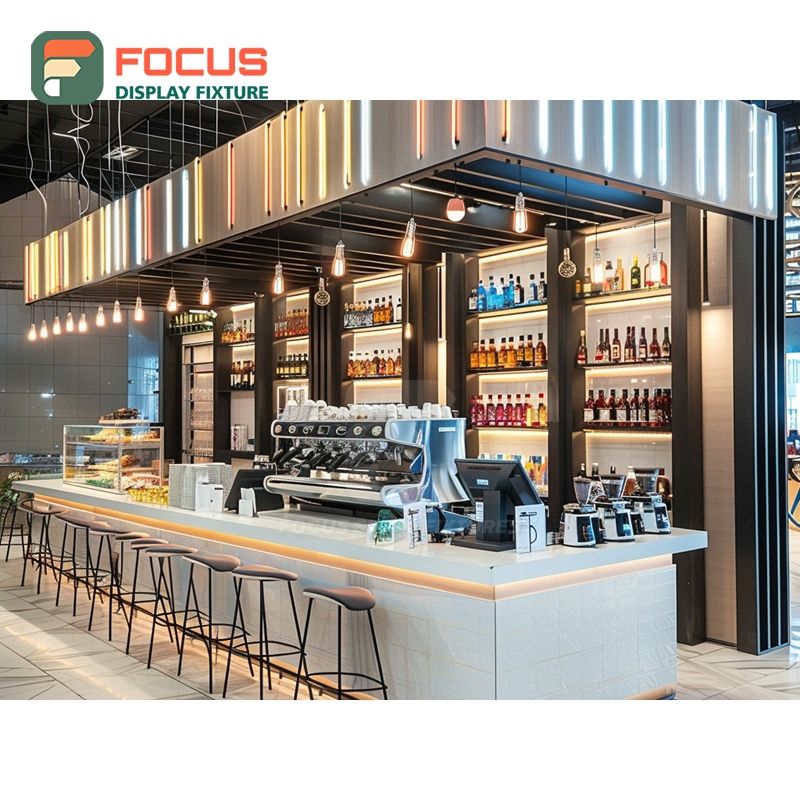 Mostrador de Servicio de Café Comercial, Mostrador de Caja, Estante para Panadería, Mostrador de Café de Madera Mate