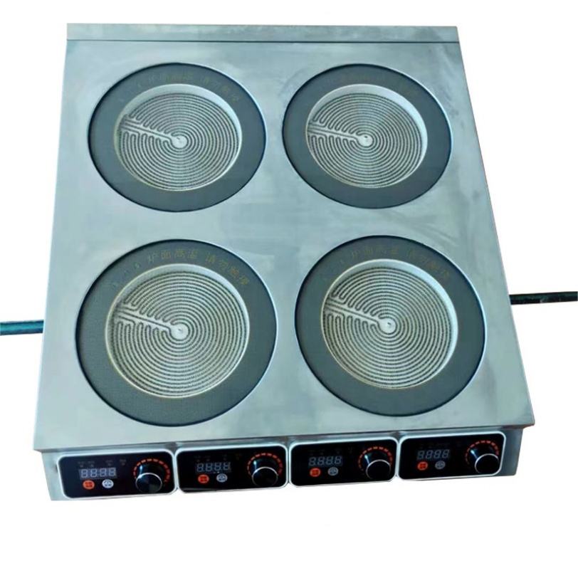 Placa de Cocción Comercial con Modo de Filtrado y Ventilación, Cocina de Inducción con Extracción de Aire Descendente, Calentamiento Flexible, Placa de Cocción Combinada de 4 Quemadores