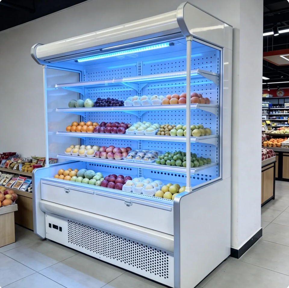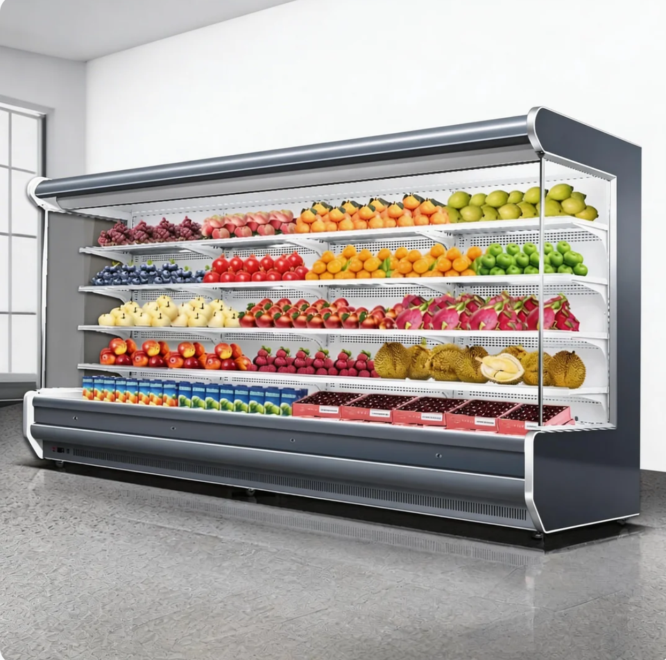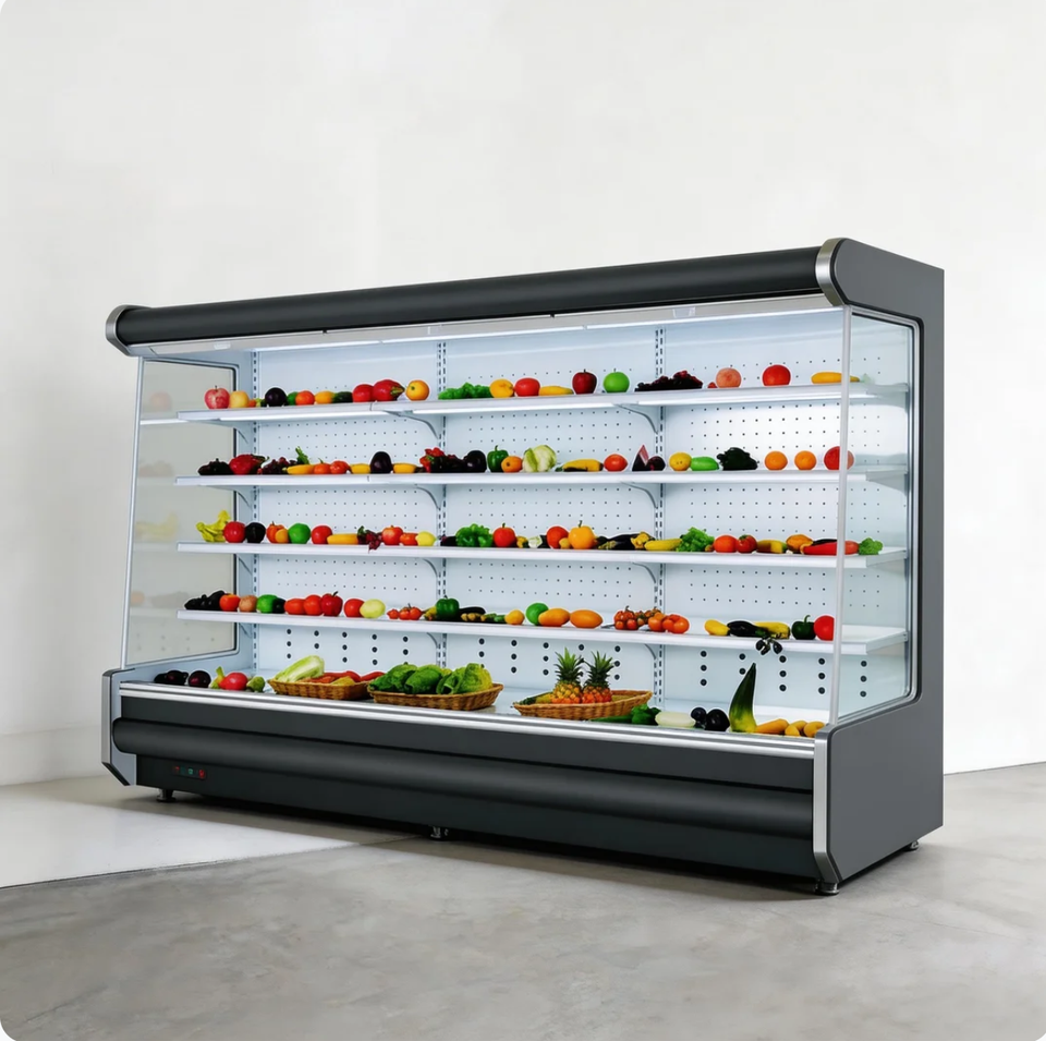 Congelador Comercial para Exhibición, Refrigerador Abierto Multideck para Supermercados con Cortina de Aire para Frutas y Verduras