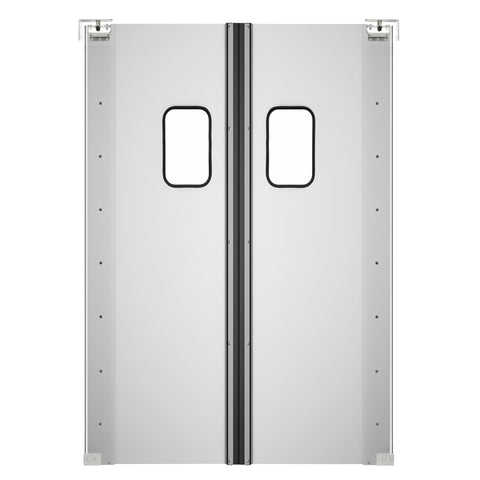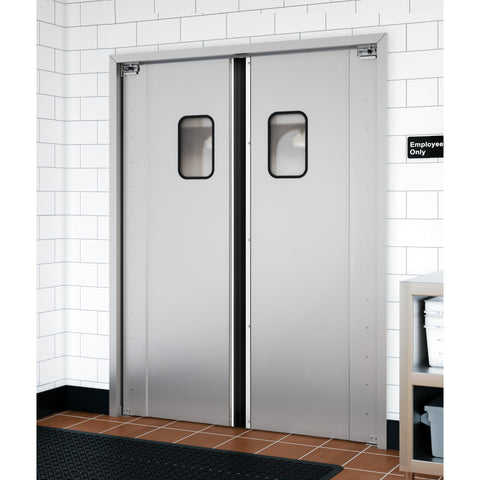 Puerta de Tráfico Batiente Comercial de Aluminio Anodizado Doble, Calibre 14, 72 Pulgadas X 84 Pulgadas Abertura de 9 pulgadas. X 14 Pulgadas Modelo de Ventana para Exteriores