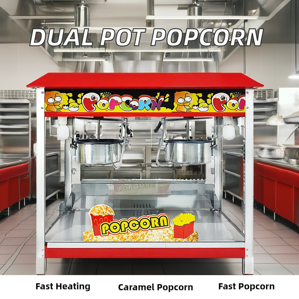 Máquina de Palomitas de Maíz Eléctrica Comercial de Doble Olla para Uso Industrial, Doméstico y Caramelo