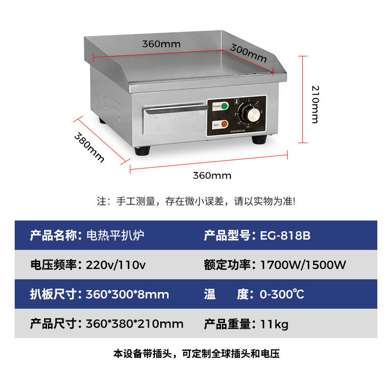 Plancha Eléctrica Comercial de 18 Pulgadas con Superficie Antiadherente de PTFE para Teppanyaki, Filetes, Tofu, con Control Mecánico de Temperatura