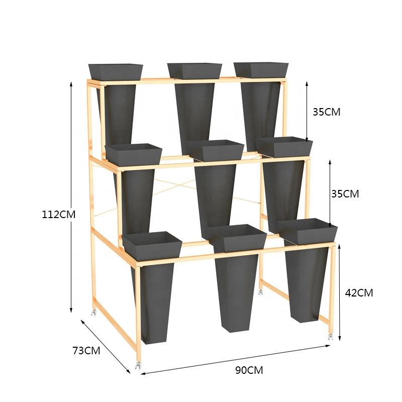 Estante de exhibición de flores comercial Soporte Balcones Terrazas Tienda de hotel Flor seca fresca Estante de exhibición de metal con cubo de plástico
