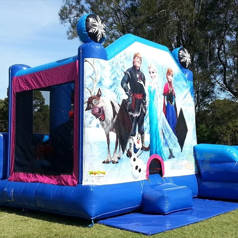 Castillo Inflable Comercial Azul Congelado con Tobogán Interior, Brincolín Inflable Seguro, Moonwalk, Casa de Brinco para Fiestas